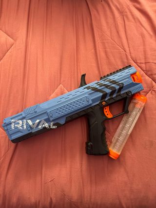 Pistola Nerf Apollo XV-700 en color azul. - Acción de resorte. - Precisión. - Velocidad de 100 FPS / 30 MPS. - Equipo azul.