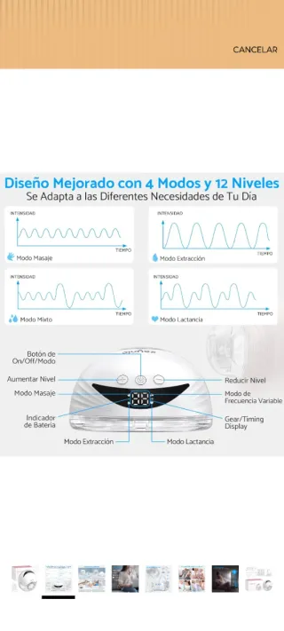 Sacaleches Comfyer W2 manos libres con modo calor (característica diferencial que ayuda a la bajada de la leche). El pack original incluye dos, pero uno no funciona, por lo que se vende como sacaleches individual, con todos los recambios ya que contiene los componentes de dos sacaleches y base de carga. ✔ Modo calor ✔ Manos libres ✔ Brida de doble sellado ✔ 3 tipos de brida y 9 niveles ✔ Función calor ✔ Carga magnética con base de carga (sólo disponible en modelos con dos unidades como éste ). ✔ Control mediante APP 📦 Estado: nuevo, sin usar 📍 Entrega en mano o envío 💬 Cualquier duda, ¡pregunta sin compromiso!