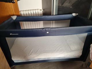 Parque cuna de la marca Bebeconfort, ideal para viajes o como parque de juegos. - Color azul marino. - Laterales de malla transpirable. - Incluye colchón de Ikea de cuna