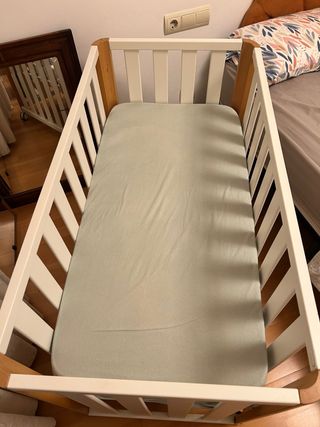 Cuna colecho de la marca Cotinfant. - Medidas: 120x60cm. - Diseño moderno y funcional. Viene con colchón, sábanas... En perfecto estado, solo hay una piececita que está floja pero se fija perfectamente, no modifica su perfecto uso.