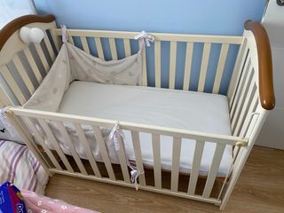 Cuna de bebé + colchón + sábanas