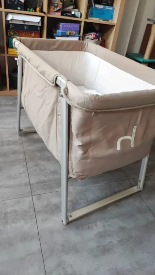 Cuna de colecho y portátil de la marca Babyhome con posición fija y también mecedora. Es ligera y fácil de transportar. Incluyo -colchón anti vuelco de bebé -sábana, -sobre colchón anti ahogo. - Color beige.