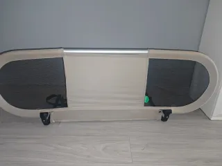 Barandilla de protección para cama de la marca Babyhome. Diseñada para ofrecer seguridad y comodidad. - Estructura de malla transpirable. - Color beige/caki - Incluye correas de sujeción (no conservo la bolsa de tela negra para guardar) - Está perfecta si no fuera por una pintadas muy suaves por la parte del interior (no he intentado sacarlas) ni molestan ni se aprecian si no te fijas.