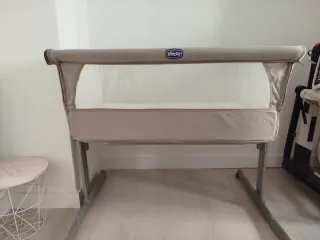 Cuna de colecho de la marca Chicco, ideal para tener al bebé cerca durante la noche. Su diseño permite acoplarla fácilmente a la cama. - Laterales de malla transpirable. - Color beige neutro. - Estructura metálica. - Marca Chicco. - Reclinable