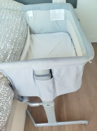 Cuna de colecho de la marca Chicco en buen estado. Su diseño permite tener al bebé cerca durante la noche. - Color gris. - Laterales de malla transpirable.