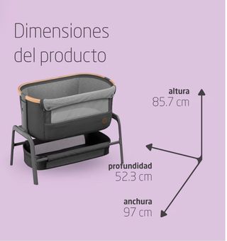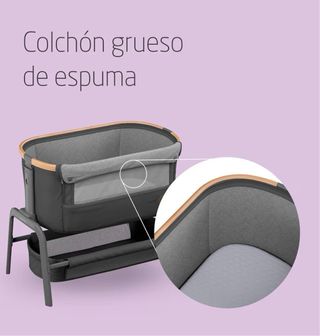 Cuna de colecho Maxi-Cosi con un diseño moderno y funcional. Perfecta para tener al bebé cerca durante la noche. - Estructura de madera y tejido gris. - Laterales de malla transpirable. - Cesta inferior de almacenamiento.