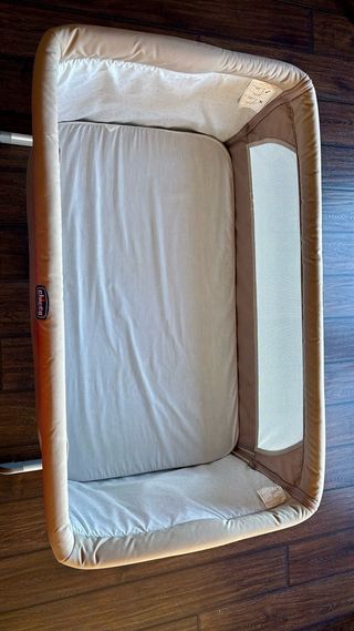 Minicuna Chicco Next2Me Magic Evo en color beige. Está en muy buen estado y es perfecta para el colecho. - Incluye colchón. - Estructura de fácil montaje y plegado. - Tejido suave y transpirable. - Ruedas para facilitar el movimiento.