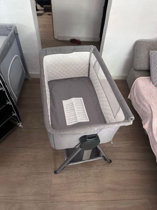 Cuna colecho Mobiclinic kids en perfecto estado. Es de color gris y tiene una estructura robusta. - Ideal para los primeros meses del bebé. - Fácil de montar y desmontar. - Tejido transpirable.