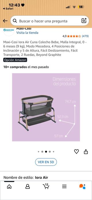 Cuna de colecho modelo Iora Air en color Beyond Graphite. Es un artículo de estilo moderno y funcional. tiene balancin y para quitarlo tamb tiene ruedas tambien , tiene una mosquitera , para guardar debajo de la cuna las sabanas o juguetes o lo que se quiera esta nueva la vendo porque me han regalado otra tiene colchon incluido - Color: Beyond Graphite - Estilo: Iora Air