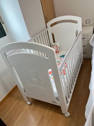 Cuna de madera blanca con colchón