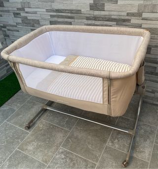 Cuna de colecho de la marca Bebeconfort, ideal para tener al bebé cerca. - Diseño moderno con laterales de malla transpirable. - Colchón incluido. - Estructura resistente y estable.