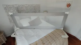 Vendo barreras de cama anticaídas marca MS – Creciendo Contigo, ideales para la transición de cuna a cama o para colecho seguro. Medidas disponibles: 📏 1 de 190 cm 📏 1 de 150 cm 📏 1 de 90 cm Perfectas para cubrir casi toda la cama (montaje en U como se ve en la foto). ✔️ Estructura resistente ✔️ Tela transpirable ✔️ Sistema seguro bajo el colchón ✔️ Abatibles para facilitar el acceso ✔️ Regulables en altura (se adaptan a distintos colchones) ✔️ Muy estables 🔎 Estado: muy buen estado, funcionamiento perfecto. 📸 Se venden juntas o por separado.