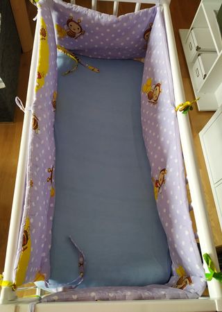 Cuna Alondra con opción de colecho. Incluye colchón verano invierno muy bueno costo 300 euros Incluye protector de cuna con estampado de animales, edredón reversible con nórdico, sabanas nuevas, protector de colchón, bolsos de cuna,.. Cualquier duda preguntar - Tejido suave y colorido.