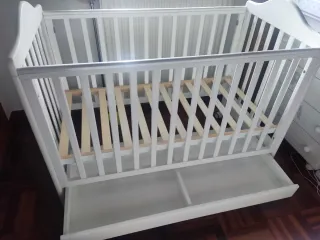 Vendo cuna colecho blanca 60x120 cm en muy buen estado. Modelo muy práctico con lateral abatible para dormir junto al bebé con seguridad y cajones inferiores amplios para guardar ropa, pañales o sábanas. Cuna robusta, estable y fácil de montar. ✔ Lateral abatible (modo colecho) ✔ 2 cajones grandes de almacenaje ✔ Medida estándar 60x120 cm ✔ Color blanco, combina con todo ✔ Buen estado, limpia y cuidada