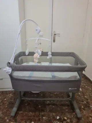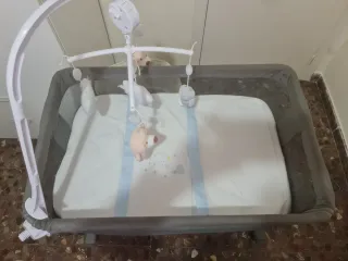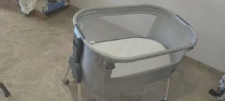Minicuna de colecho extensible, ideal para compartir descanso con tu bebé. Incluye colchón pikolín (que compramos nosotros aparte) y sábanas. - Diseño moderno y funcional. - Tejido suave y transpirable. - Fácil de montar y desmontar.