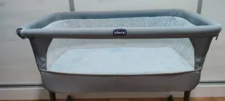 Minicuna colecho de la marca Chicco en color gris. Permite tener al bebé cerca durante la noche. Tiene una parte con rejilla que cierra con cremallera y seis alturas en cada lado (puedes inclinarla para tu bebé). Fácil montaje y lleva bolsa de transporte aunque la tengo en el trastero. - Diseño moderno y funcional. - Incluye colchón. - Ruedas para facilitar el desplazamiento.