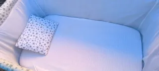 Cuna de niño/a, con colecho a estrenar en su caja, marca trama,practicamente nueva, muy cuidada, colchon, ropa de cuna, que se ve en la foto, chichoneras reversibles, funda nordica.