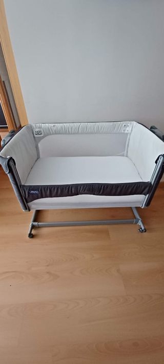Cuna colecho Chicco Next2Me en perfecto estado. Es ideal para que el bebé duerma cerca de los padres. - Estructura ligera y fácil de montar. - Tejido gris de tacto suave. - Incluye colchón.