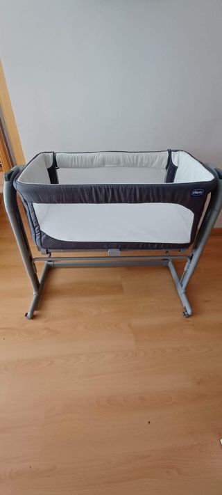 Cuna colecho Chicco Next2Me en perfecto estado. Ideal para que el bebé duerma cerca de los padres. - Estructura de metal resistente y estable. - Tejido suave y transpirable de color gris. - Incluye ruedas para facilitar el movimiento. - Fácil montaje y desmontaje.