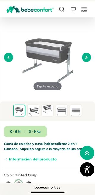 En color verde menta adquirida a finales de 2023, en perfecto estado y guardada en su caja original. - Laterales de malla transpirable. - Incluye colchón. - Muy ligera y fácil de montar y desmontar. El revestimiento puede desmontarse para lavar. - Equipada con un simple y seguro sistema de anclaje a la cama, que asegura la óptima sujeción gracias a las correas. - Lleva 4 ruedas con freno y pies antideslizantes. Opción de función balancín. - Altura regulable para adaptarse a la altura a de la cama. - Se puede colocar en posición semi inclinada lo que favorece la digestión del bebé y evitar regurgitaciones.