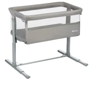 Cuna de colecho de la marca Bebeconfort en color gris. Ideal para tener al bebé cerca durante la noche. - Laterales de malla transpirable. - Altura regulable. - Base acolchada. - Estructura metálica. - Patas extensibles.