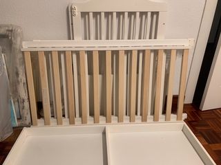 Cuna modelo SUNDVIK de Ikea en color blanco. SIN COLCHÓN. - Estructura de madera. - Barreras de seguridad. -Puede ajustarse la posición del colchón y quitar una barandilla para colecho. La tengo guardada desarmada.