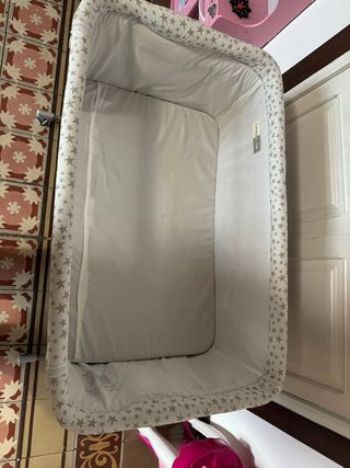 Cuna colecho con el mejor colchón que compramos aparte especial para bebes. Solo el colchón nos costó 130 eur. - Laterales de malla transpirable. - Ruedas para facilitar el movimiento. - Incluye colchón y protector. - Diseño moderno y funcional.