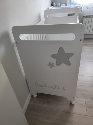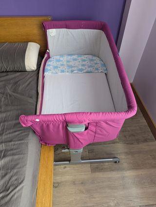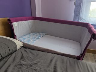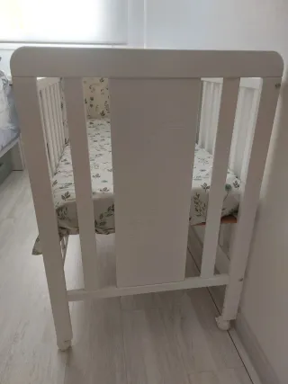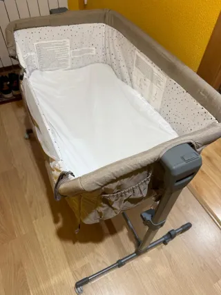 Cuna de colecho con muy poco uso, ideal para tener al bebé cerca. - Altura regulable. - Diseño moderno y funcional. -no dispone de colchón pero tengo uno que se vende por separado (preguntar )