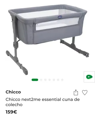Vendo minicuna Chicco para colecho, en perfecto estado. Es de color verde menta y tiene un diseño ligero y actual. - Estructura metálica. - Tejido transpirable. - Fácil montaje y plegado. De REGALo, protector colchón impermeable y sabana bajera, ambos ajustables