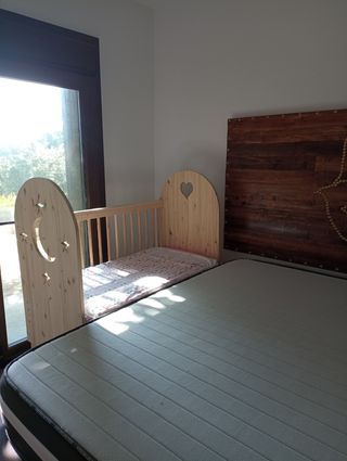 -Cuna de la marca Don Algodón: Está equipada con 8 alturas diferentes de somier y un lateral móvil con doble cierre y bloqueo. Convertible en colecho utilizando Kit Colecho (no incluído) Tiene varios desperfectos ocasionados al hacer una altura adicional para que encajara con la altura deseada pero es sólo estético.