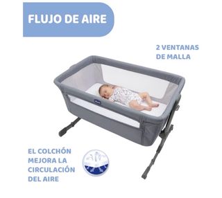 Cuna de colecho de la marca Chicco, ideal para tener al bebé cerca durante la noche. Su diseño en color gris se adapta a cualquier habitación. - Laterales de malla transpirable. - Altura regulable. - Ruedas para facilitar el desplazamiento.