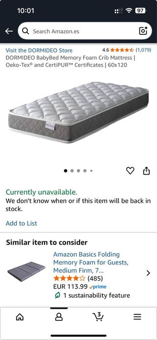 Colchón plegable para cuna de viaje Hauck Sleeper. - Color azul marino. - Incluye bolsa de transporte. Precio amazon 42€