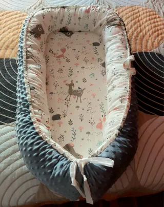 Reductor de cuna con un bonito estampado de animales del bosque y elementos naturales. Es ideal para crear un espacio seguro y acogedor para el bebé, tanto en casa como durante los viajes. - Diseño con osos, zorros, ciervos y erizos. - Tejido exterior mimoso en color gris. - Cintas blancas para atar y ajustar.
