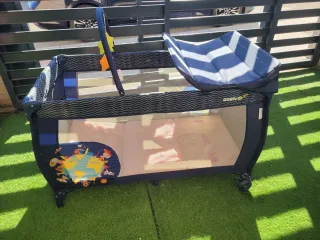 Cuna de viaje en muy buen estado, con dos posiciones y accesorios. - Incluye parque infantil. - Incorpora cambiador. - Estructura resistente y segura.