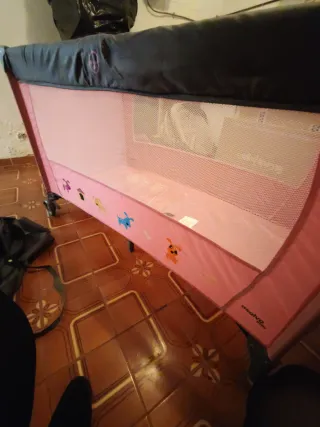 Vendo cuna de viaje de la marca Asalvo Baby, color rosa. Viene en su bolsa de transporte e incluye colchón plegable. Tiene un uso normal, las bolsas de transporte están un poco gastadas. Hay una pequeña raja en la base que no afecta y en la parte de los dibujos de animales y algún trazado boli. Ver fotos. Funciona perfectamente, lo vendo porque ya no la uso y necesitamos espacio en casa. Se recoge por el metro el carmen, línea 5.