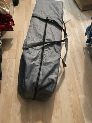 Funda para cuna de viaje de la marca Asalvo. Es de color azul claro y tiene asas para su transporte. -se vende cuna de viaje nueva a estrenar, nunca la llegue a abrir ni tan si quiera ...... - Color azul claro. - Asas de transporte.