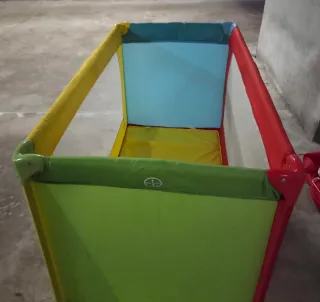 Cuna parque de viaje. Se vende sin colchón. En muy buen estado, sólo tiene un poco de descosido en un adorno lateral, que no afecta para nada a su estructura. Tengo la funda para guardarlo. Tiene también el cambiador, como se ve en la última foto, pero lo tengo en otra casa y no he podido hacerle foto.