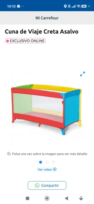 Cuna de viaje Asalvo Baby completa Vendo cuna de viaje marca Asalvo Baby en excelente estado. Muy versátil y segura (hasta 15 kg). Incluye: * Cambiador extraíble muy cómodo. * Arco de juegos con peluches para entretener al bebé. * Gatera con cremallera para que el niño entre/salga solo. * Ruedas con freno para fácil movimiento. * Bolsa de transporte y colchón plegable incluidos. Es compacta, fácil de montar y perfecta para viajes o como segunda cuna. Laterales de malla para ventilación y vista total del bebé. ¡Lista para usar!