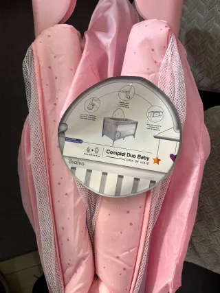 Vendo pack completo de descanso para bebé con solo 1 año de uso. Todo impecable, su precio original fue 128€. Incluye: 1) Cuna de viaje Asalvo doble altura con arco de juegos. 2) Colchón Baby Dreams 120x60cm núcleo HR y Aloe Vera (mucho mejor que los básicos de viaje). 3) Protector P'tit Lit impermeable antiácaros. 4) Cojín cuña antirreflujo para recién nacido. Es el lote ideal para tenerlo todo listo en viajes o casa de los abuelos sin comprar nada más.