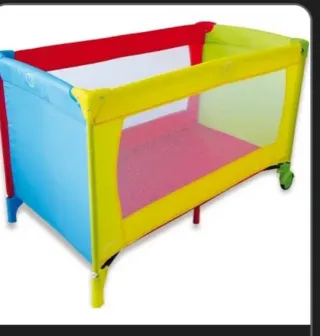 Cuna de viaje Asalvo en buen estado, ideal para llevar a todas partes. Sus colores vivos la hacen muy atractiva. - Estructura resistente y segura. - Laterales de malla para ventilación. - Plegable para fácil transporte y almacenamiento.