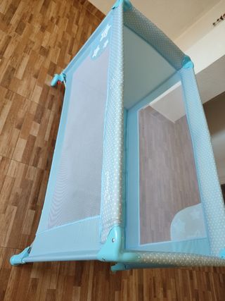 Utilización desde el nacimiento hasta los 15 kg, dispone de doble altura que facilita el acceso al bebé. Incluye un arco de juguetes y un bolsillo en la parte frontal. Cuenta con dos lados opacos y otros dos de malla para una mejor ventilación y visibilidad, y una entrada con cremallera que permite al bebé entrar y salir gateando cuando sea mayor.Tiene dos ruedas con freno que facilitan su movilidad y un sistema de plegado compacto que ahorra espacio al almacenarla. Incluye una bolsa de transporte. Regalo colchón (no venía incluido, se compró a parte). Se puede utilizar como cuna de viaje o parque de juegos.
