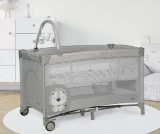 Cómoda cuna de viaje Asalvo Baby en color gris con estampado infantil. - Posee dos alturas. - Cambiador y barra de juegos con estrellas de peluche. - Gatera y amplio bolsillo para guardar cosas. - Plegable y fácil de transportar. Se vende con todos los complementos. Tiene su base acolchada, como todas las cunas de viaje, aunque se recomienda llevar colchón de viaje adicional. Precio original: 80 euros. En muy buen estado (solo una pequeña mancha de aceite de bebé en un lateral de la malla y una ligera perforación no apreciable en la tela de la pata). Medidas especificadas en foto.