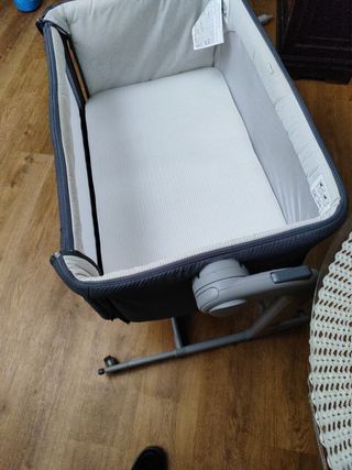cuna para recien nacido inclinable que puede ajustarse en altura dependiendo de la cama. Tiene ruedas y ocupa poco espacio. La cuna está en perfecto estado, regalo sabanas bajeras y protector colchón, todo desinfectado. Viene con su funda de viaje.
