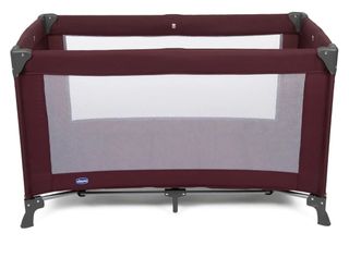 Cuna de viaje Chicco en color gris y rojo, fácil de plegar y transportar. - Estructura metálica. - Tejido resistente.