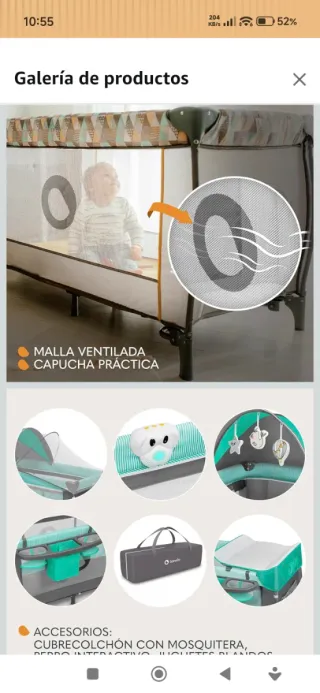 Cuna de viaje de color gris, ideal para transportar. Trae mas accesorios que los subire despues como cambiador y porta bibi y pañales - Estructura de metal. - Laterales de malla transpirable. - Incluye colchón. - Plegable para un fácil almacenamiento.