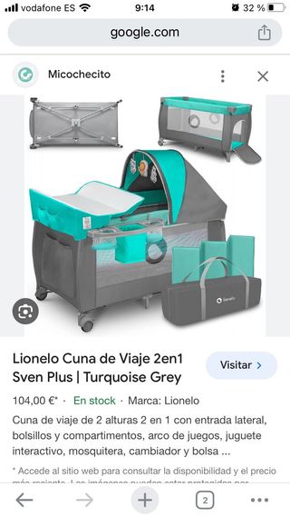 Cuna de viaje Lionelo(costó 100€) .Cuna con doble altura(recien nacido hasta 15kg), colchon plegable, frenos ruedas, arco con muñequitos, cambiador y puerta lateral para usar como parque de juegos. Se pliega modo paraguas. Lleva mochila transportin.