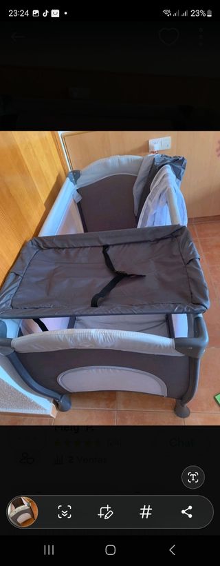 usada en una ocasión,como nueva. lleva su colchón fino,cambiador y adaptador para poner el colchón más alto y más cómodo Añado otro colchón más gordo