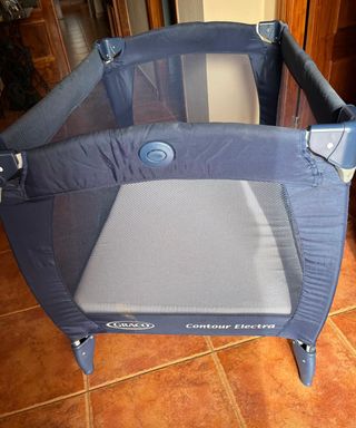 Cuna de viaje Graco Contour en buen estado. Ideal para viajes o para tener en casa como cama auxiliar. - Estructura de fácil montaje y plegado. - Incluye colchón. - Tejido azul marino.