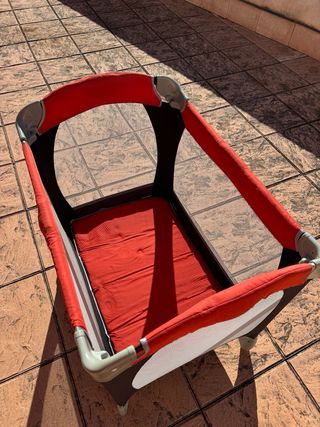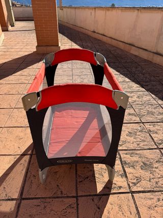 Cuna de viaje de la marca Graco, color rojo, incluye cambiador. Estructura de malla transpirable. Plegable para fácil transporte. Recoger en Cabanillas de la Sierra