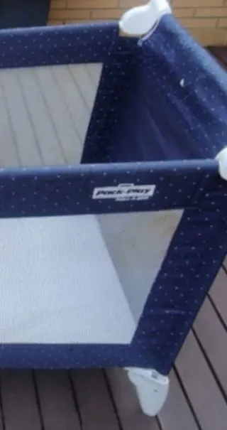 -- Cuna de viaje marca Graco. Se pliega y transporta con facilidad (incluye funda). Una vez abierta se puede usar también como "corralito" o parque de juegos, con malla como se ve en la foto. -- Trona y orinal de la marca Ikea, casi sin uso. Se incluye un colchón de espuma que no aparece en las fotos, cortado a la medida de la cuna.